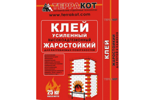 Усиленный клей «Терракот» применяется для облицовки печей, каминов, печей-барбекю, мангальных зон, банных экранов и прочих нагреваемых поверхностей керамической плиткой, природным камнем и облицовочным керамическим кирпичом, а также для монтажа полов с подогревом.