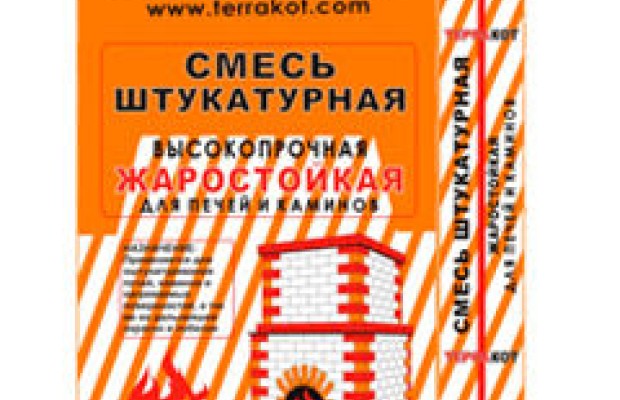 Жаростойкая высокопрочная штукатурка «Терракот» применяется для выравнивания и оштукатуривания печей, каминов, печей-барбекю, мангальных зон и прочих нагреваемых поверхностей.