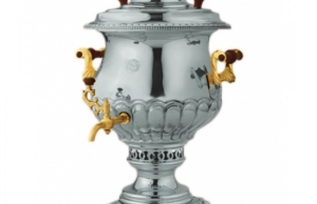 Самовар угольный 5,5л (никель с позолоченными ручками)